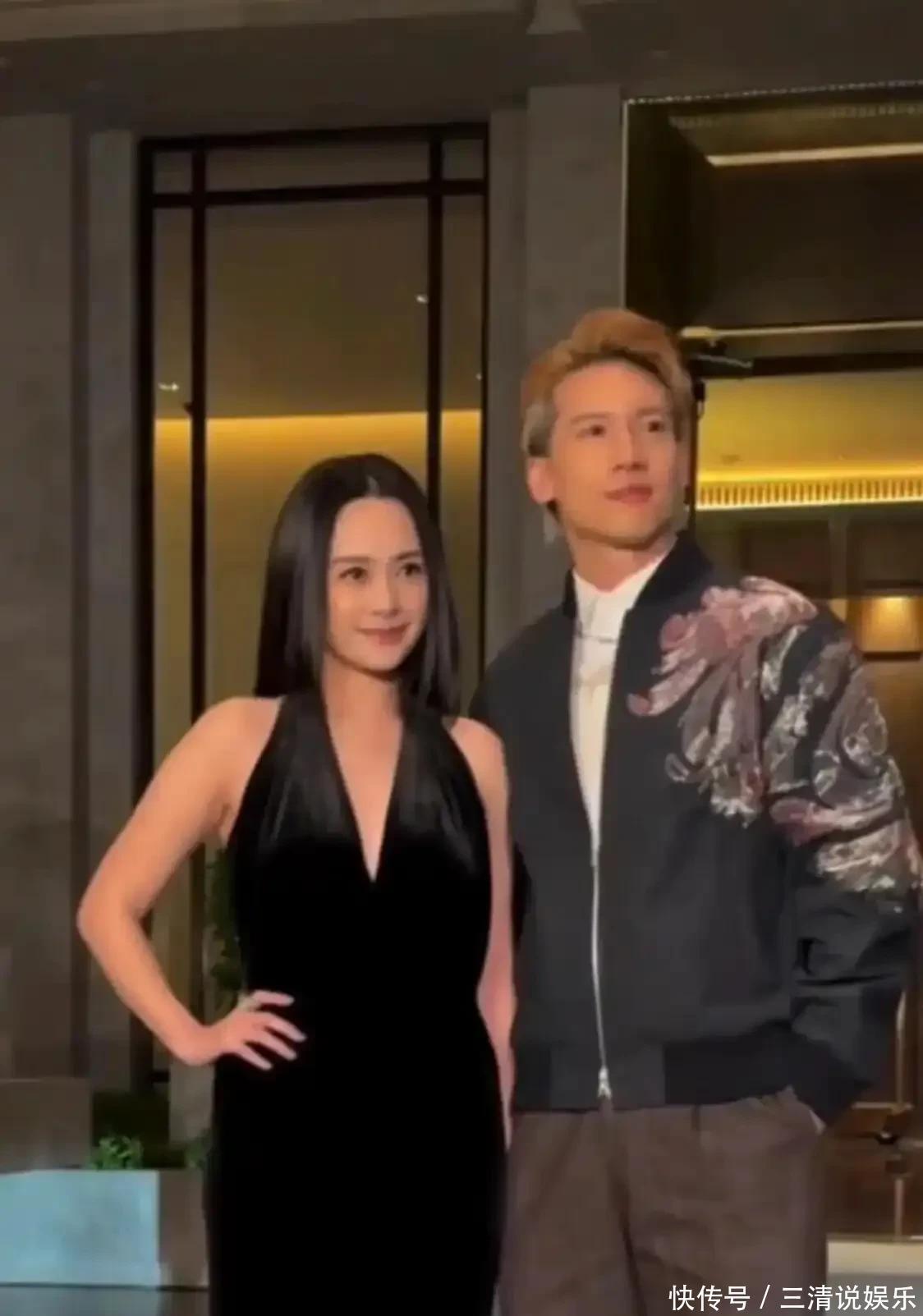阿娇当晚穿黑色深V长裙, 和关智斌站在一起时肩膀紧靠着他。有网友发现阿娇最近瘦了很多, 整个人的状态看起来很不错。